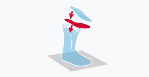 Ein Paar Size Adjuster ist im Schuhkarton inkludiert. Wenn du diese Einlage unter das Fußbett legst, verringert sich die Größe deines Schuhs genau um eine halbe Größe. Skifahrer, die eine ganze Größe benötigen, wählen einfach den nächstgrößeren Halbgrößen-Schuh und passen ihn entsprechend an.
