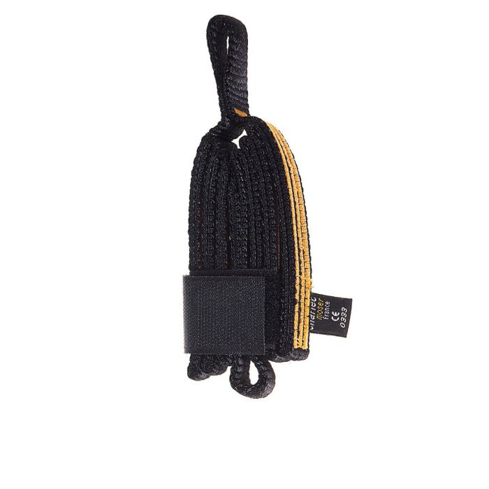 Das Band wird so vernäht, dass eine zusätzliche Schlaufe entsteht. Diese Schlinge dient der Selbstsicherung am Standplatz. Beim Abseilen kann das Abseilgerät in der zusätzlichen Schlaufe befestigt werden. Die Mammut Sicherungsschlingen sind in den Längen 65 und 90cm erhältlich.